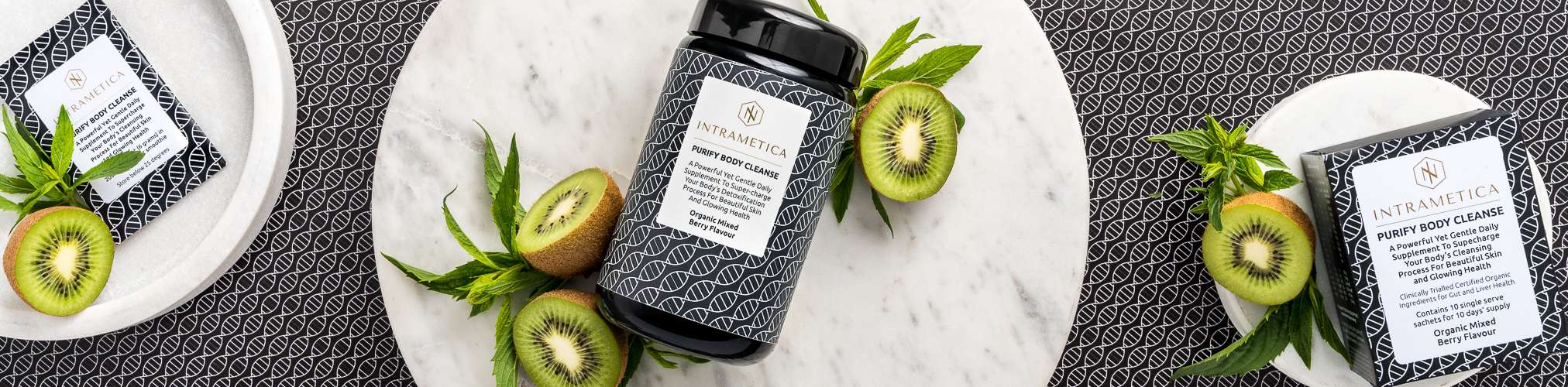 Intrametica® Purify Body Cleanse is a superfood supplement for everyday use, containing clinically proven bioactive botanicals that support liver and gut detoxification, gut healing, gentle elimination via the bowel, and blood purification to support clear glowing skin from within.